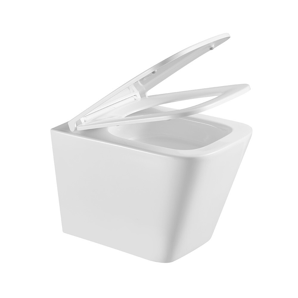 Подвесной унитаз серии TX Tornado скошенной квадратной формы с прямыми линиями.
