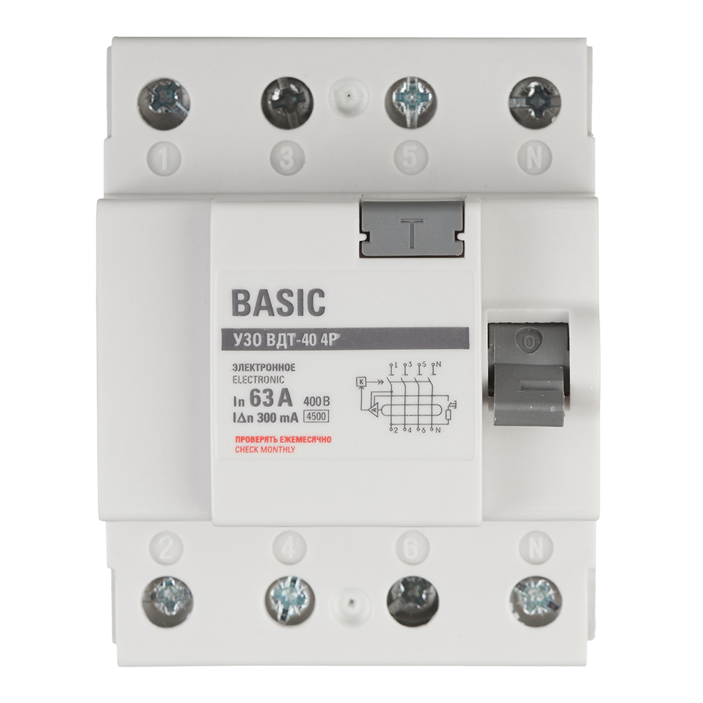 УЗО EKF Basic ВДТ-40 63А 3P+N тип AC 300 мА 4,5 кА (elcb-4-63-300e-sim)