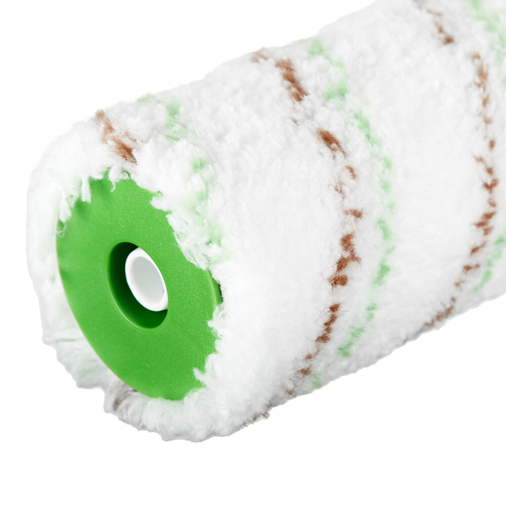 Предназначен для работы с любыми водно-дисперсионными красками, а также грунтами, антисептиками и лаками на водной основе на ровных или слегка шероховатых поверхностях. Устойчив к растворителям. Рукоятка имеет отверстие для телескопического стержня.