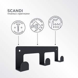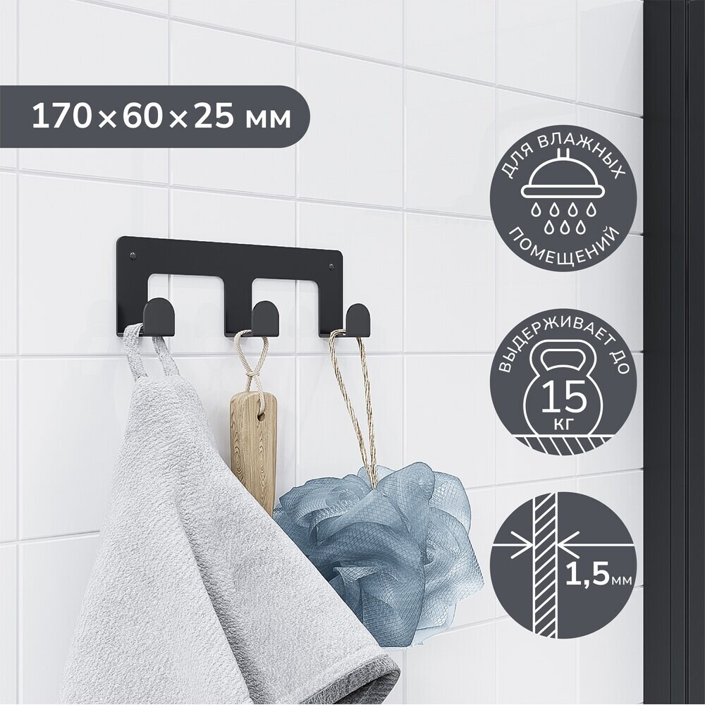 Вешалка для ванной Ulitka Scandy 3 крючка на шуруп металл черный (74104329)