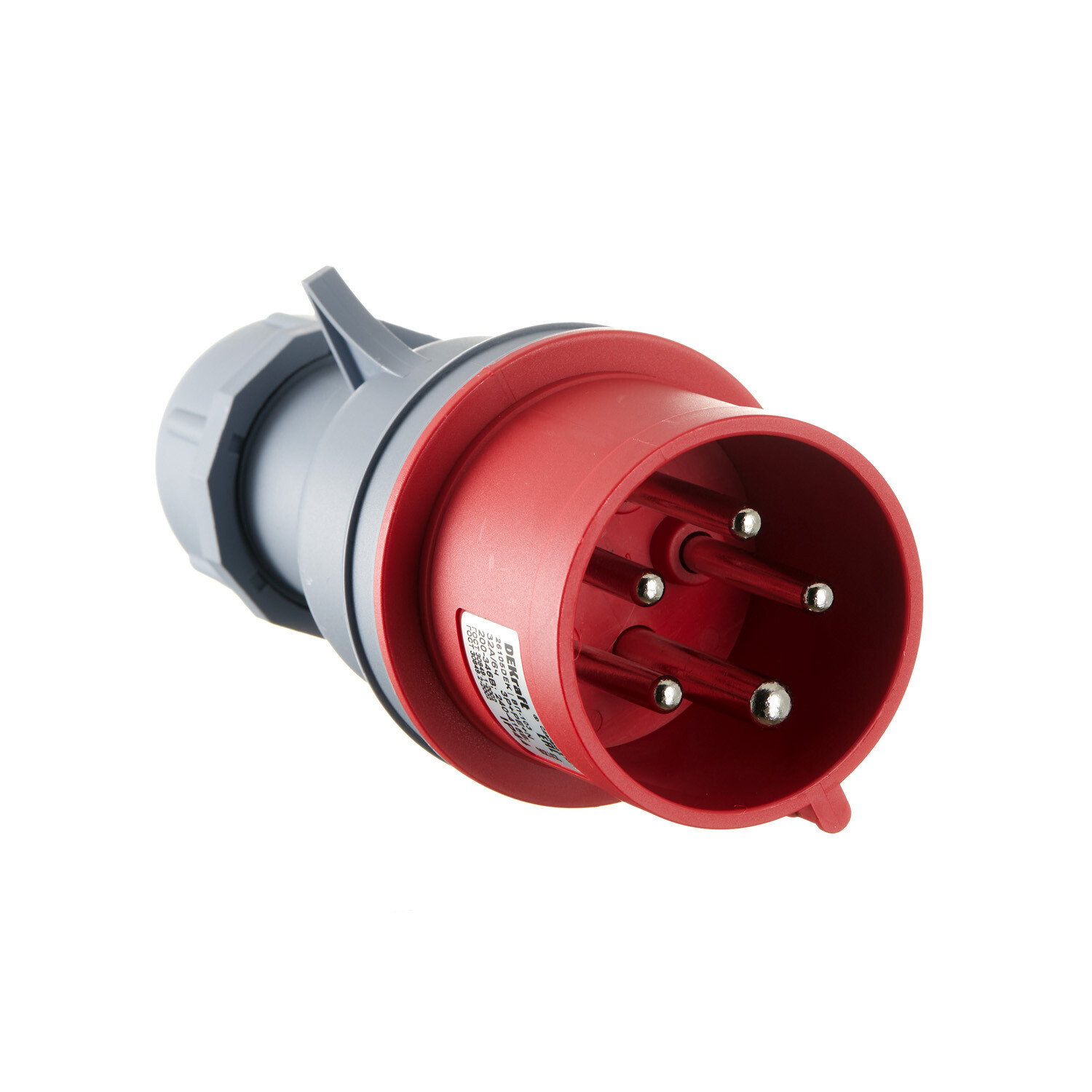 Вилка силовая прямая переносная Dekraft ВП-103 с заземлением 3P+N+PE 3 фазы 32 А 380 В IP44 красная (26105DEK)