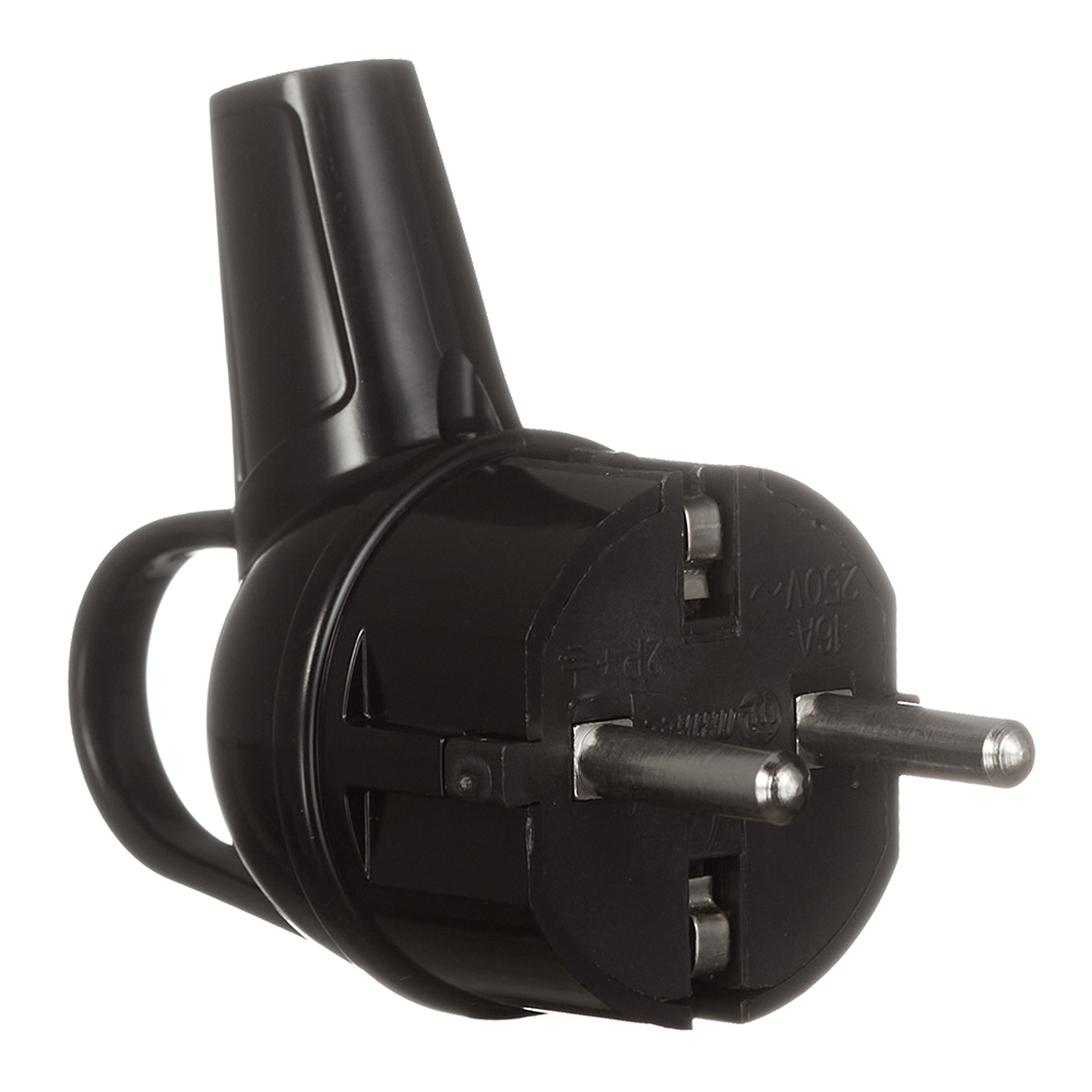 Вилка угловая с заземлением 16 А 250 В Makel с кольцом черная (10038)