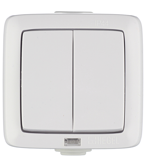Выключатель Hegel Alfa двухклавишный накладной белый с подсветкой (ВА10-252)