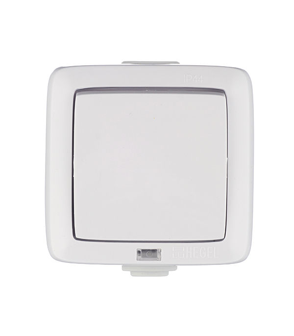 Предназначен для включения и выключения света. Степень защиты IP44 обеспечивает пыле- и брызгозащиту. Возможна установка и эксплуатация в помещениях с повышенной влажностью (складские и подсобные помещения, бассейны, автомобильные мойки, строительные площадки, сады, террасы, гаражи, кемпинги и т.п.) Индикация исключает мерцание выключенных ЭСЛ и светодиодных ламп