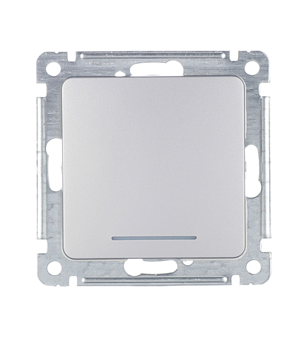 Выключатель Hegel Master одноклавишный встраиваемый серебро с самовозвратом с подсветкой (ВС10-432-06)