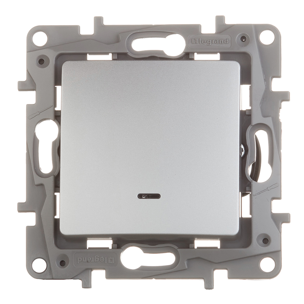 Выключатель Legrand Etika одноклавишный встраиваемый алюминий с подсветкой (672403)