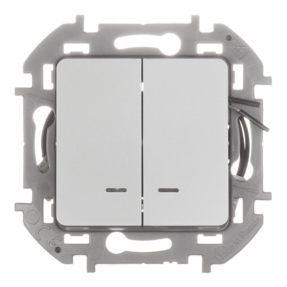 Выключатель Legrand Inspiria двухклавишный встраиваемый алюминий с подсветкой (673632)
