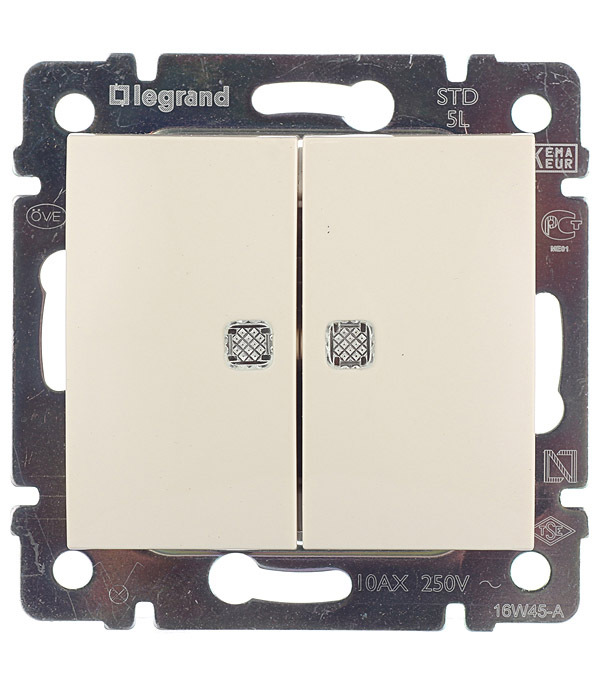 Выключатель Legrand Valena двухклавишный встраиваемый слоновая кость с подсветкой (695630)