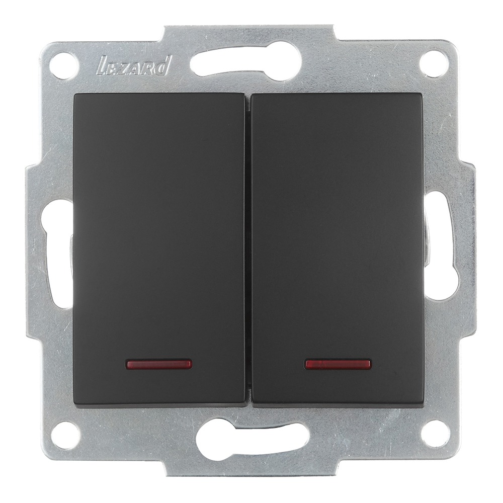 Выключатель Lezard Karina двухклавишный встраиваемый черный бархат с подсветкой (707-4288-112)