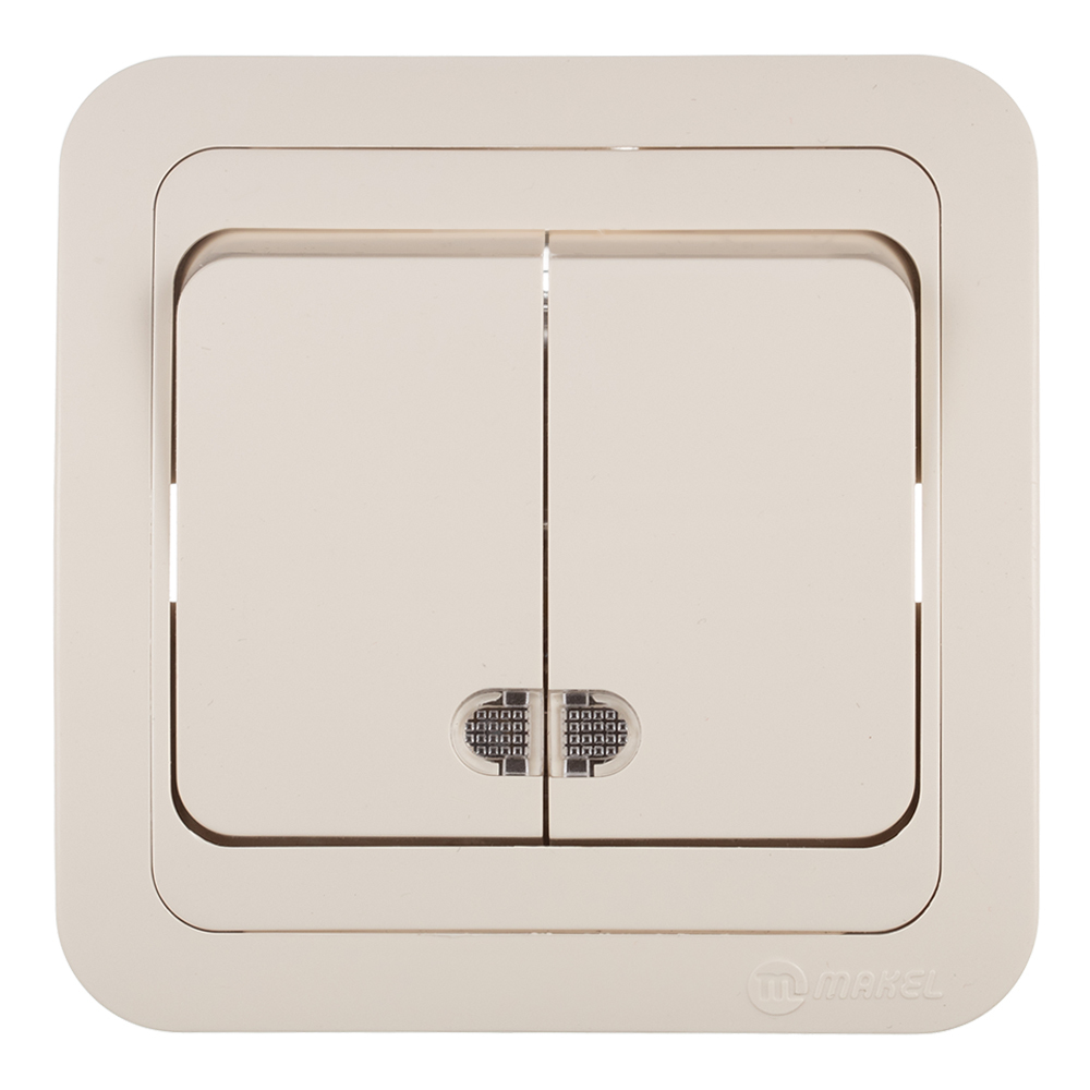 Выключатель Makel Mimoza двухклавишный встраиваемый бежевый с подсветкой (25023)