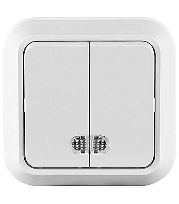 Выключатель Makel Siva Ustu двухклавишный накладной белый с подсветкой (45123)
