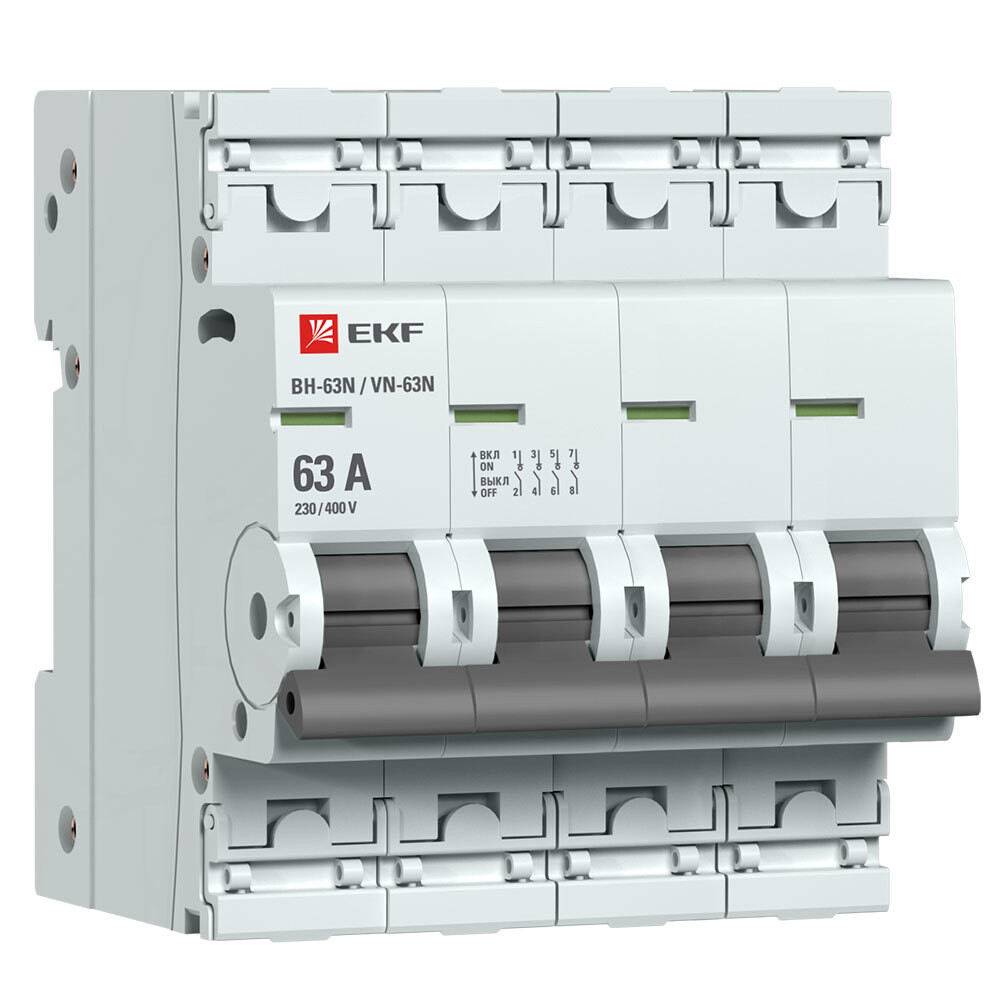Выключатель нагрузки EKF PROxima ВН-63N 4Р 63А 400 В на DIN-рейку (S63463)