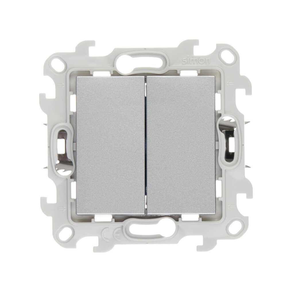 Выключатель Simon 24 Harmonie двухклавишный встраиваемый алюминий (2420398-033)