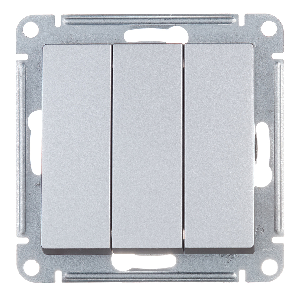 Выключатель Systeme Electric AtlasDesign трехклавишный встраиваемый алюминий (ATN000331)