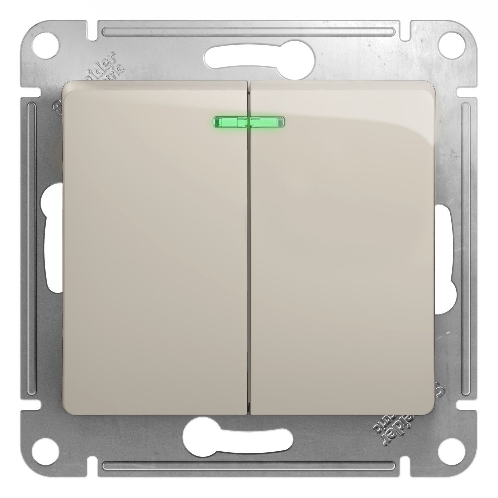 Выключатель Systeme Electric Glossa двухклавишный встраиваемый молочный с подсветкой (GSL000953)