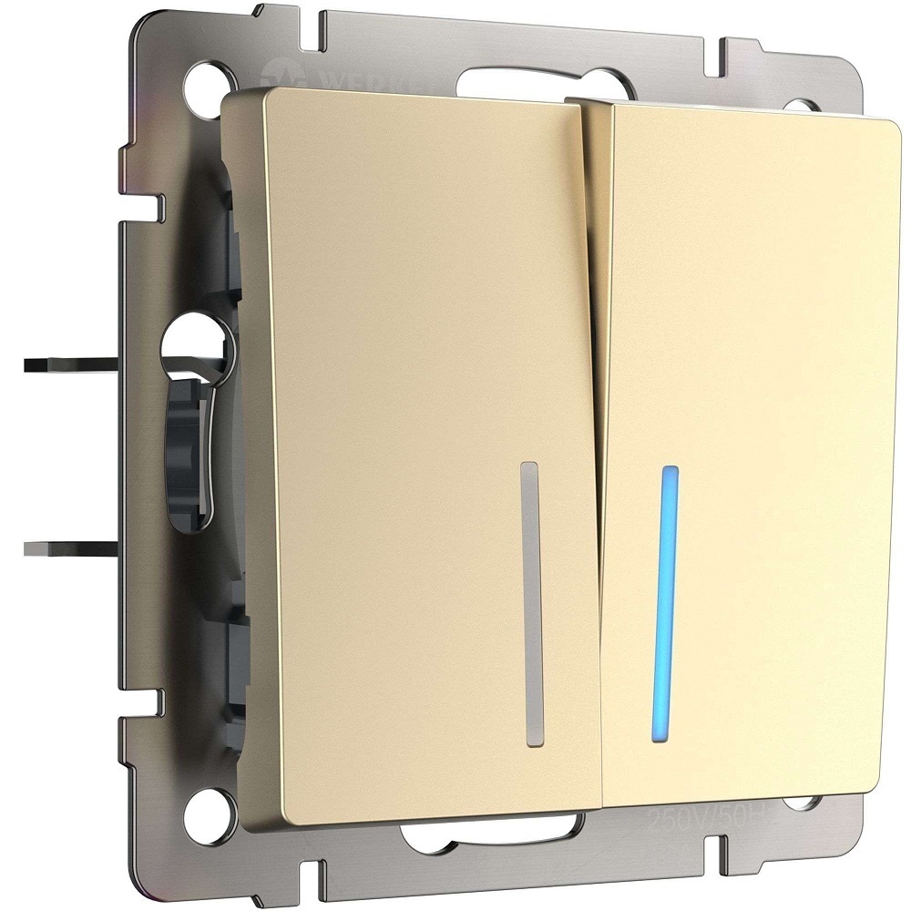 Выключатель Werkel двухклавишный встраиваемый шампань с подсветкой (a050859)