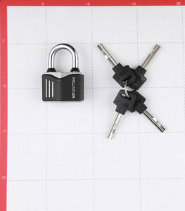 Корпус замка выполнен из стали в оправе из пластика. Закаленная дужка.