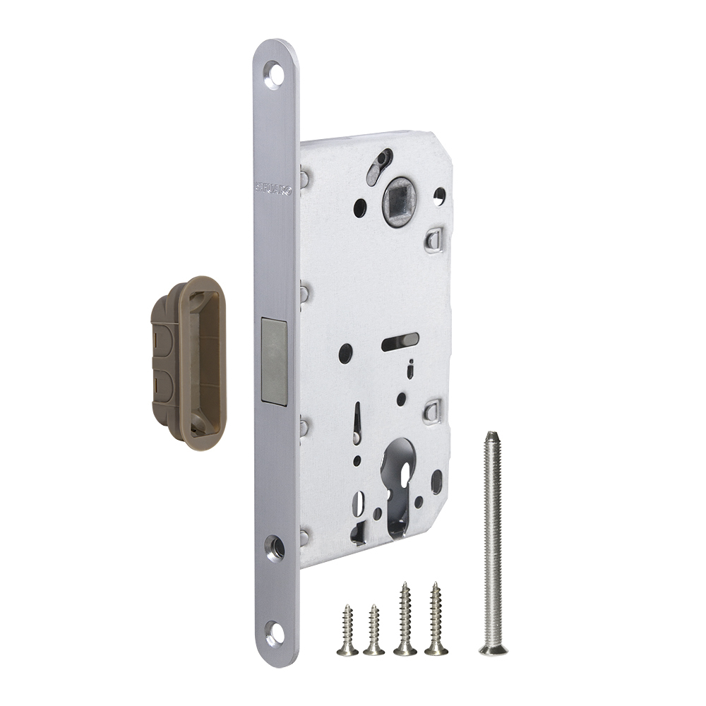 Бесшумный корпус врезного замка Fuaro M85C серии Magnet с магнитным механизмом изготовлен в соответствии с требованиями ГОСТ 5089-2011. Предназначен для установки в межкомнатные двери. Корпус выполнен из стали с надежным гальваническим покрытием. Магнитный механизм обеспечивает бесшумность работы защелки. Корпус врезного замка M85C с усиленной пружиной имеет высший 4 класс надежности (250 000 циклов открывания/закрывания). Отверстия под стяжные винты находятся на расстоянии 38 мм. Размер бэксета — 50 мм. Размер межосевого расстояния — 85 мм. Возможна установка дверных ручек на стяжные винты для более прочного крепления. Комплектация: ответная планка и крепежная фурнитура в цвет изделия.