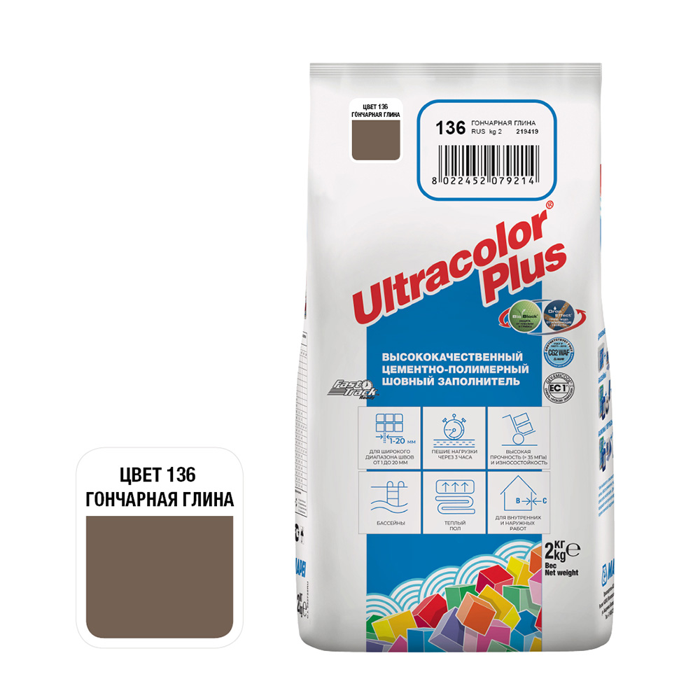 Затирка цементная Mapei Ultracolor Plus 136 гончарная глина 2 кг