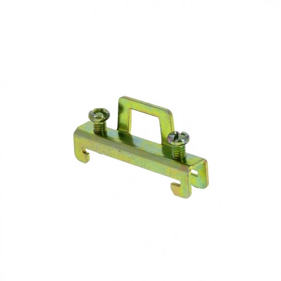Применяется для фиксирования модульной аппаратуры и клеммных зажимов на DIN-рейке. Кронштейны для установки DIN-рейки позволяют установить рейку с отступом от монтажной платы, что дает возможность провести провода за DIN-рейкой. Кронштейн для установки DIN-рейки под углом позволяет установить клеммные зажимы под углом, что облегчает подведение к ним проводников. Изготовлены из оцинкованной стали.