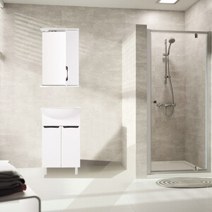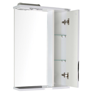 Комплектация: Зеркальный шкаф в собранном виде, один светодиодный светильник, розетка с выключателем, ручка, внутренние полки — стекло 2 шт., полкодержатель с присоской — 8 шт., крючки для крепления.