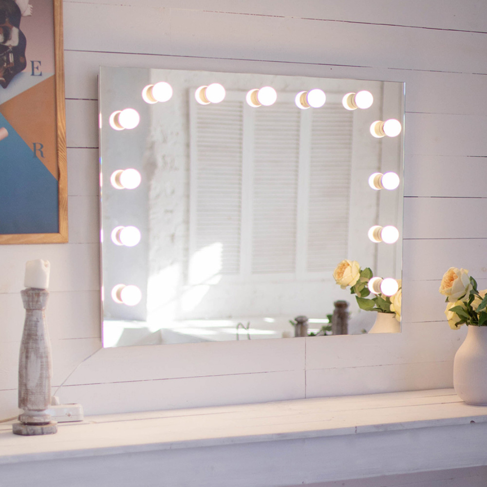 Зеркало настенное с лампочками Benedicta 900х700 мм гримерное белое