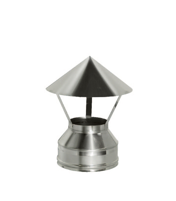 Предназначен для предохранения двустенных дымоходов от атмосферных осадков, является завершающим элементом дымового канала.